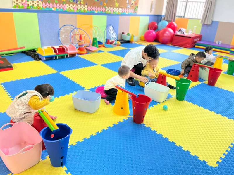 训练特色:“趣味+专业”结合——攀爬架“闯关”练协调、平衡木“漫步”提前庭、触觉垫“寻宝”改敏感;