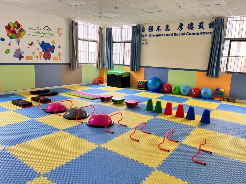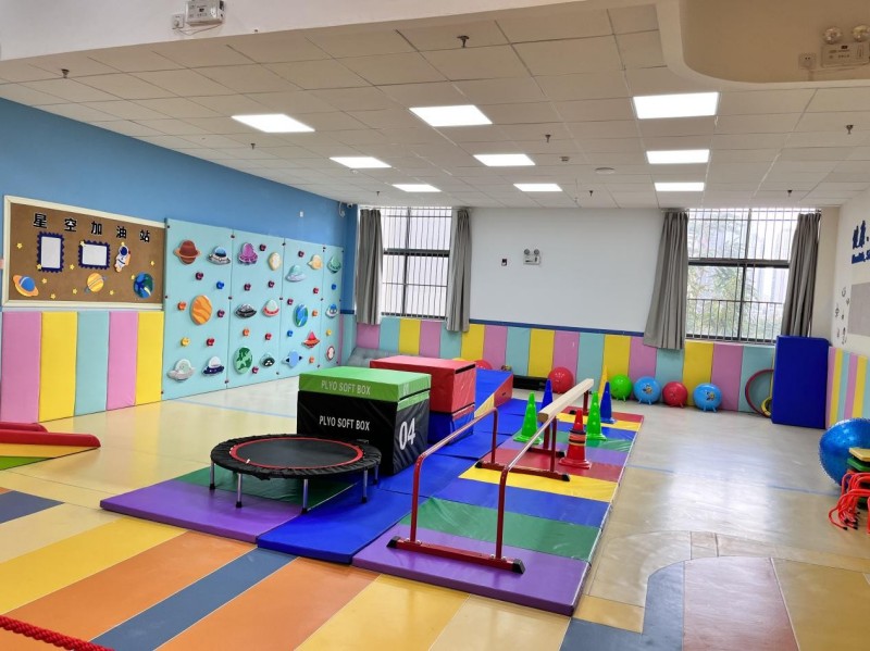 校区配备专业感统教具(如平衡木、触觉板、悬吊设备等),打造安全、丰富的训练场景,通过游戏化课程激发孩子参与兴趣,在快乐中提升感觉统合能力。